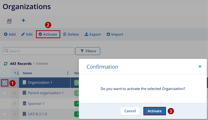 - Click the Activate button at the top of the grid to initiate the activation process.