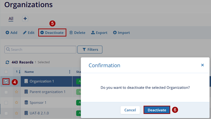 - A confirmation pop-up window appears. Click the Deactivate button to proceed