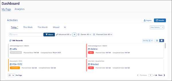 Activities. The Activity records are displayed when the logged-in user is an Activity Owner.