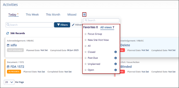 - Click on the star icon to mark a view as favorite and access the Favorites tab to see all views marked as favorites.