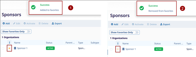 - Click the Star symbol next to the sponsor's name to add a favorite to the sponsor.