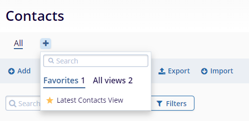 To add a view, click on the + icon and select the view to apply from either the Favorites tab or the ‘All’ views tab.