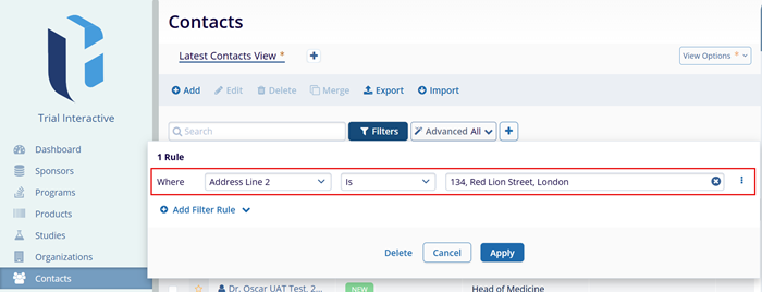 When the Or condition is applied, 134, Red Lion Street, London will be displayed by the system, as the initially configured filter takes precedence over the others.