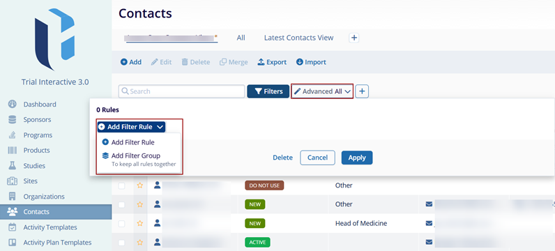 To add advanced filters, click on Advanced All dropdown > + Add Filter Rule > Add Filter Rule or Add Filter Group.