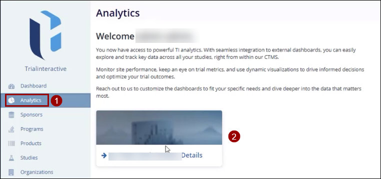 Analytics at the Domain Level From the left-hand navigation pane, select the Analytics module. The Analytics module page displays the welcome message. Click on the link to access the dashboards and dashlets.