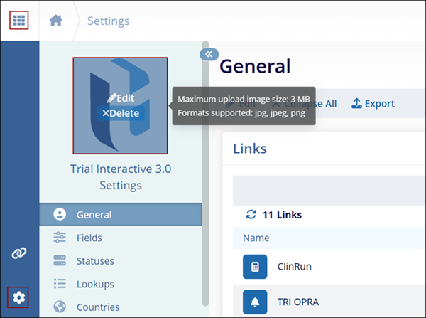 Users can change the name and logo associated with their CTMS environment to keep up with the changes that happen throughout a company’s lifetime.
