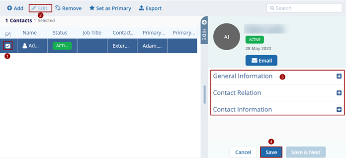 - Make changes to the General Information, Contact Relation, and Contact Information sections.