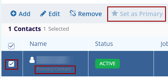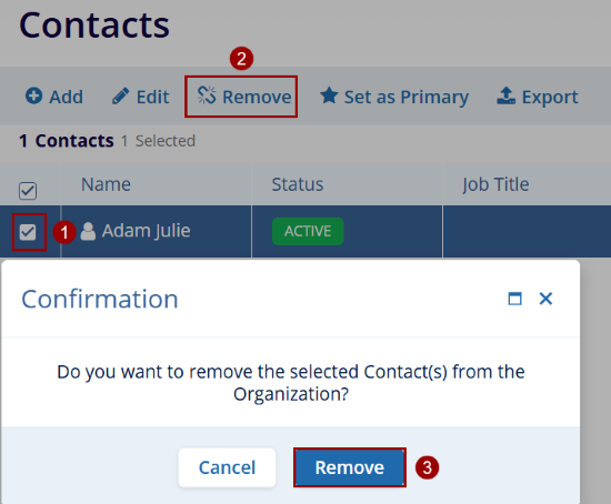 - On the Organization Details screen, click on the Contacts from the left-hand navigation links.