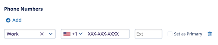 Phone Numbers: Click on the +Add button to include phone numbers for the