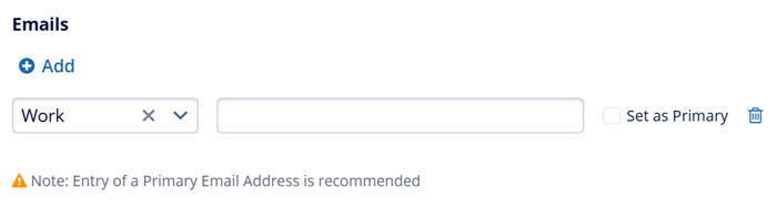 Emails: Click on the +Add button to add a new email address. Click on the