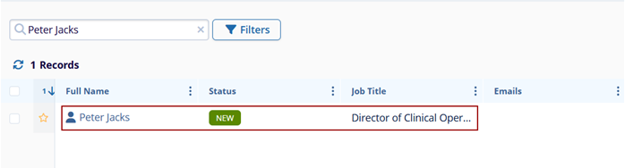 - Once the contact is successfully created, it appears on the Contacts screen.