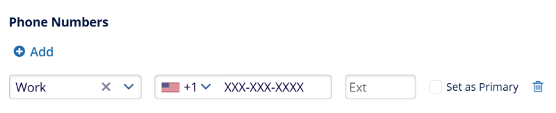 - Specify the phone number type i.e., Work, Mobile, Office, or Fax.