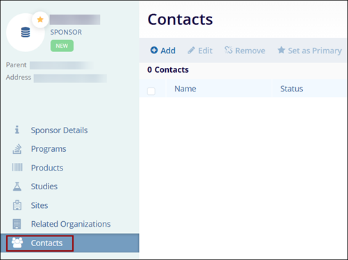 To create contacts at the sponsor level, follow the steps below.