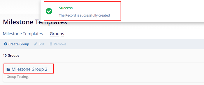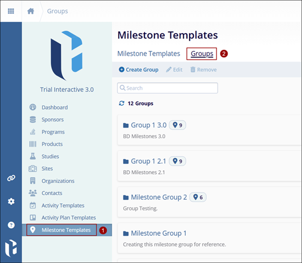 - Click on Groups on the Milestone Templates screen.