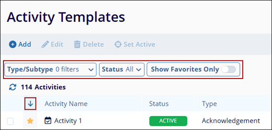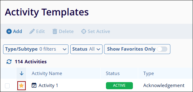 To mark an activity as a favorite, click on the star icon beside the Activity Name.