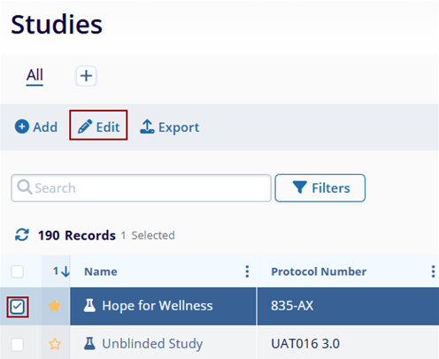 To edit studies, follow the steps below.