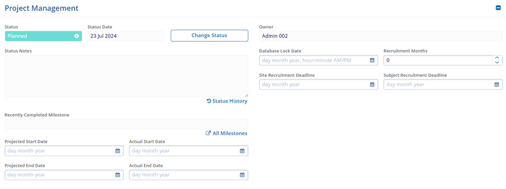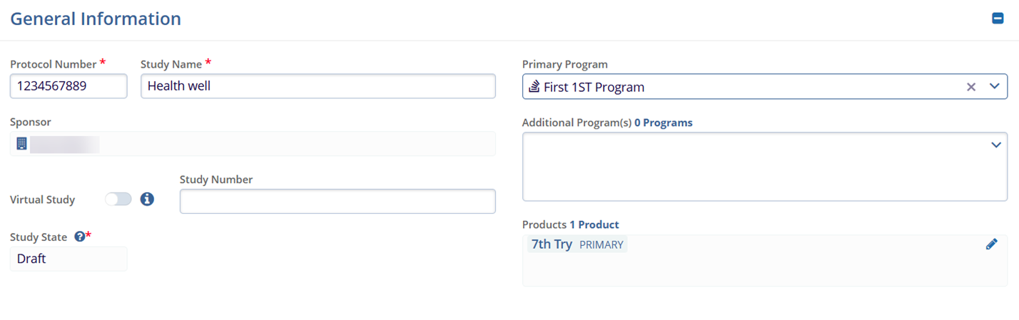 - Make any necessary changes to the Study Details by expanding the following sections.