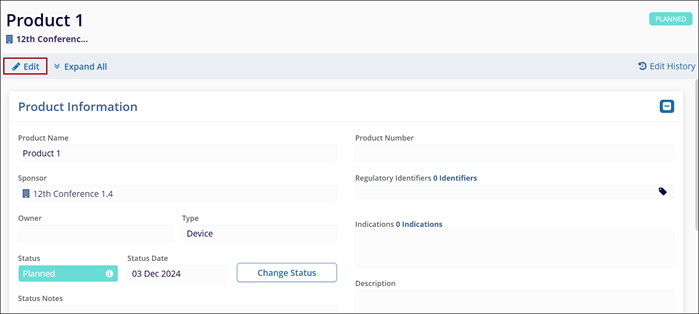 - On the Product Details screen, click on the Edit (pencil) icon.