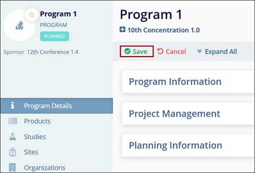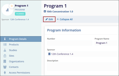 - Edit the Number, Program Name, Sponsor, Notes and Description.