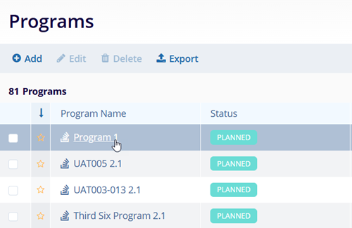 - From the left-hand navigation pane, click on the Programs. This opens the Program screen with a list of existing Programs.