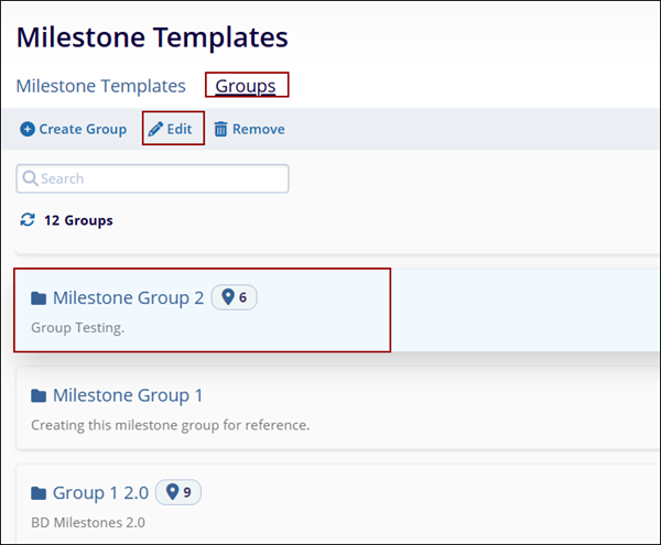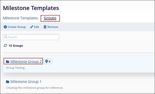 - From the left-hand navigation links, select Milestone Templates > Groups