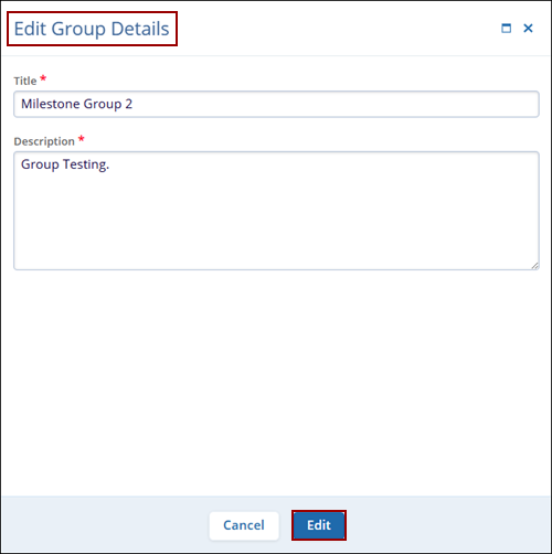 - On the Edit Group Details page, make the required changes to the Title* or Description*.