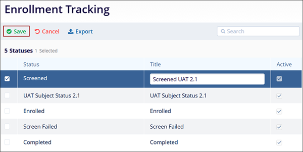 - Select a status to delete by clicking on the checkbox
