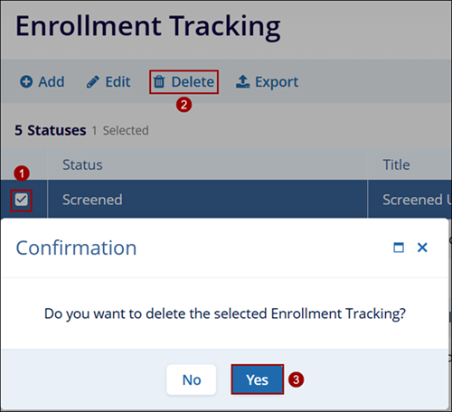 To delete enrollment tracking record, follow the steps below.