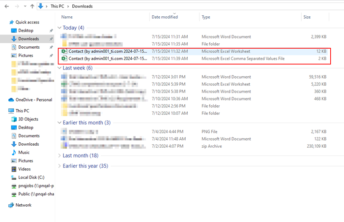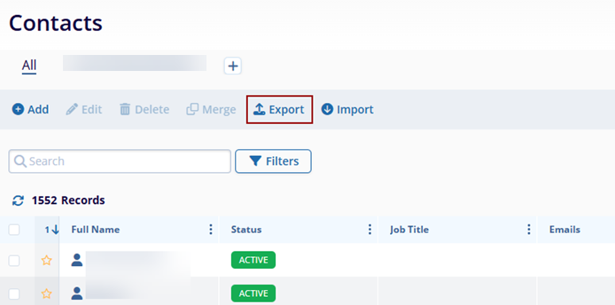 - Current Page: This option will export data on the existing page of the Contacts screen.