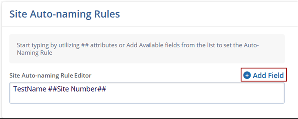 - Click on the +Add Field button within the Site Auto Naming Rules section