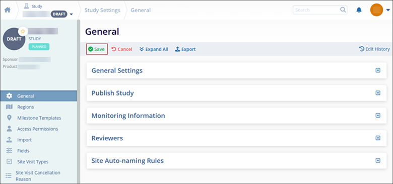 Navigate to the Study Settings screen and click on the General link from the left-hand navigation pane.