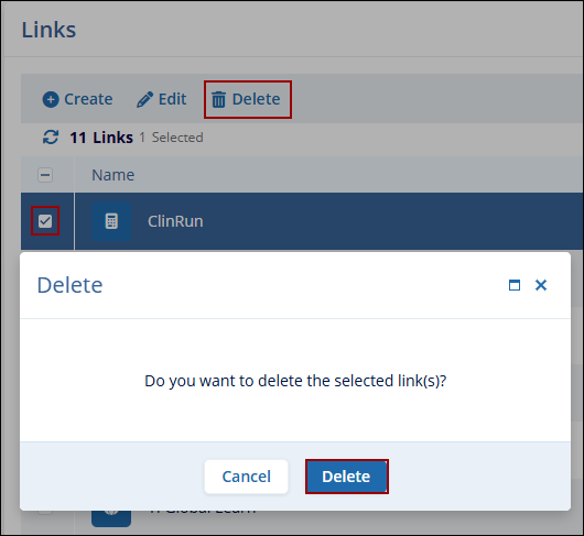 - To delete a link, select a link and click on the Delete button from the top menu bar.