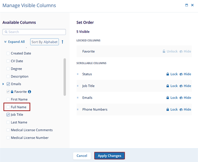 accessing the Manage Visible Columns option of any other column. Click on the check