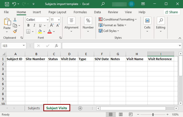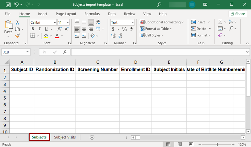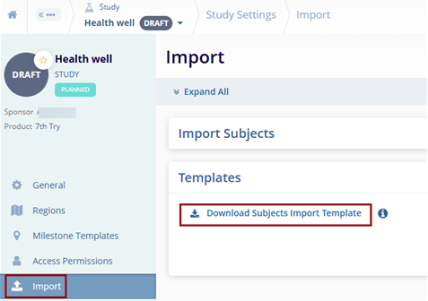 The Import functionality within the Study Settings allows users to import subject records through a pre-defined template.