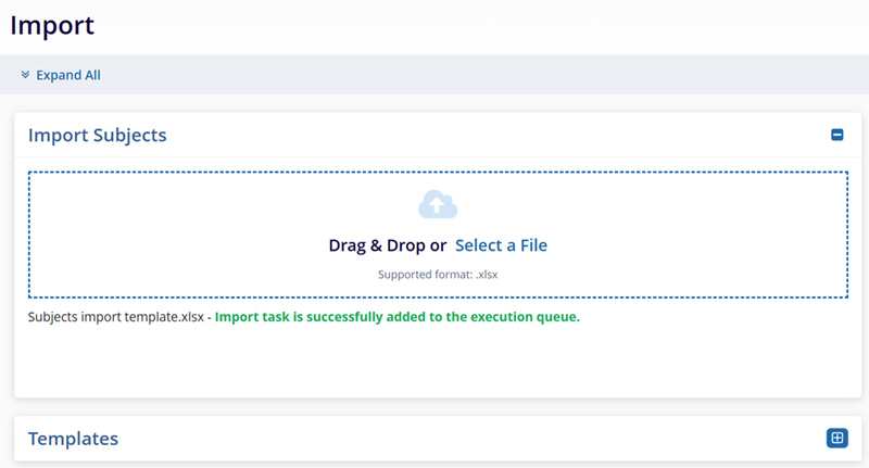 - Expand the Templates section and click on the Download Subjects Import