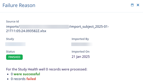 - On the ‘Failure Reason’ screen, view the number of successful and failed records.