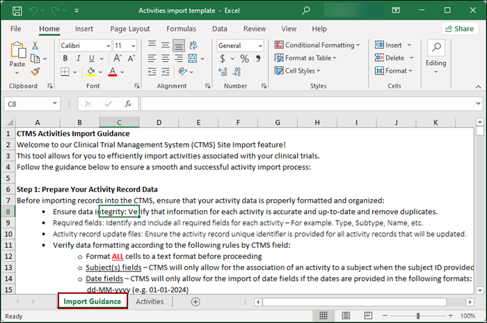 - For detailed instructions on the import process, click on the Import Guidance tab.