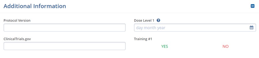 The Additional Information section displays the custom fields configured via Settings > Fields > Studies. The displayed fields vary based on the configurations set in the Settings section.