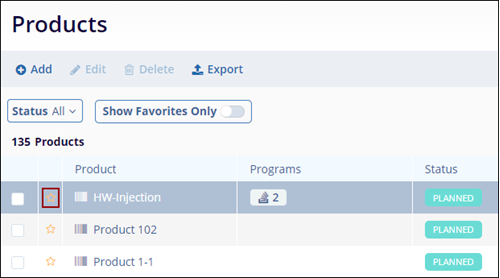 - Click on the same icon again to remove that product from the favorites list. Enable the Show Favorites Only toggle switch to display products marked as favorites.