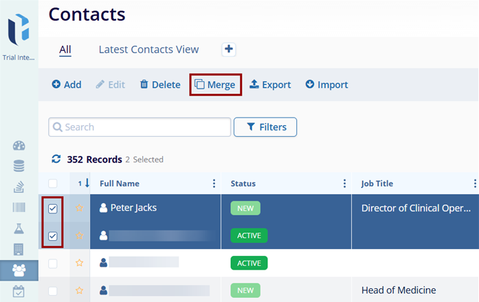 - Select two or more contacts by clicking on the checkboxes for each contact.