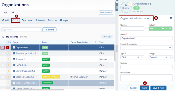 Method 1 Click the checkbox next to the organization name. Then, click the Edit button (pencil icon). click the Edit button (pencil icon). On the Quick View panel, make the required edits. Click on the Save button.