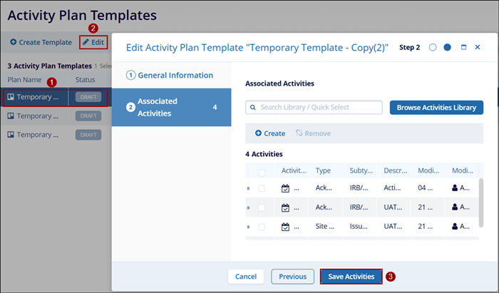 Note: Do not click on the plan name since it directly opens the Edit Activity Plan Template screen which is another method to edit an activity plan.