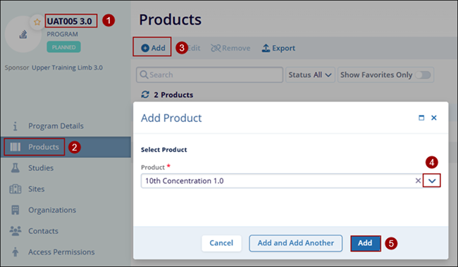 To add a product at a program level, follow the steps below.