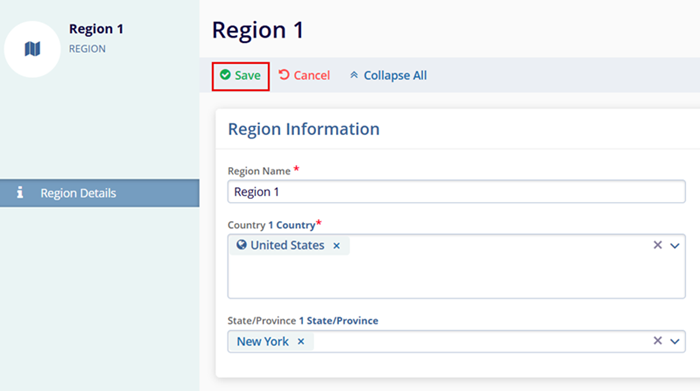 Note: To enter the State/Province and Cities values, select only a single country for the region definition.