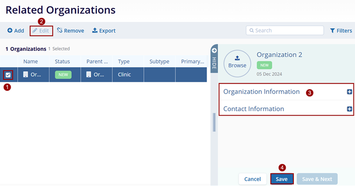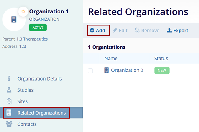 - On the Organization Details screen, click on the Related Organizations from the left-hand navigation links.