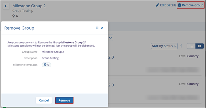- Click on the Remove button on the Remove Group screen.