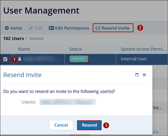 - Once the invitation is successfully sent to the user, the success message is displayed.