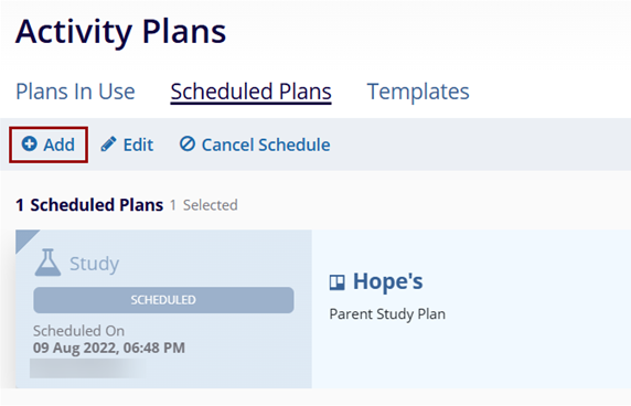 - Follow the similar steps detailed in the Plans in Use section to complete adding a Scheduled Plan.