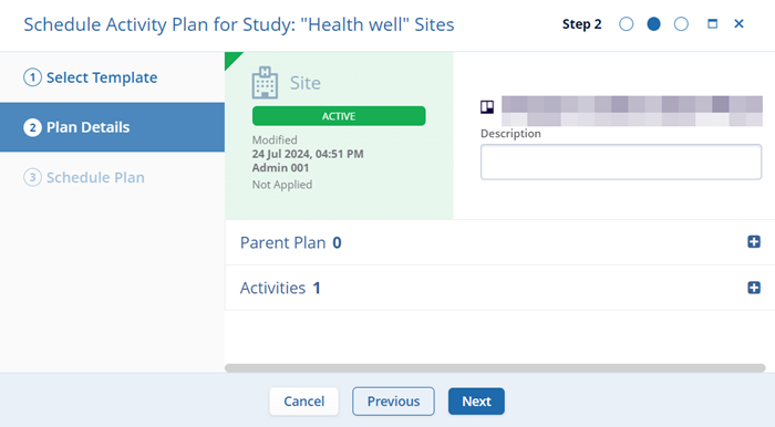 - On the Schedule Activity Plans for Study screen, perform the following.