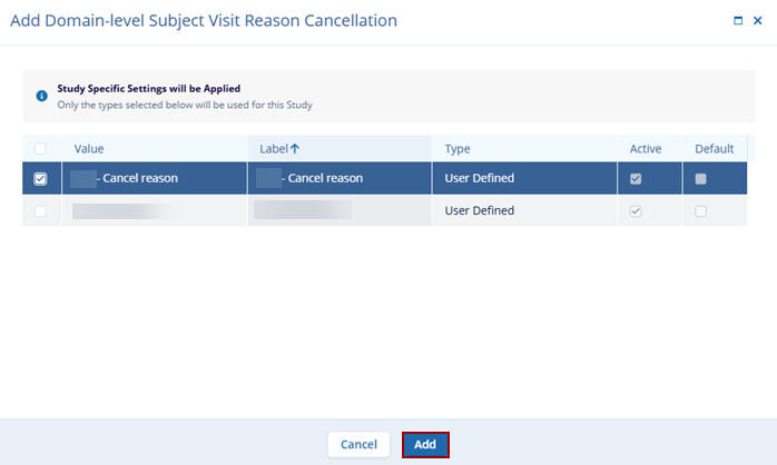 Add Subject Visit Cancellation Reason